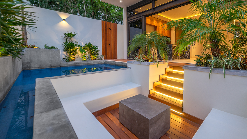 El uso de concreto, mármol y maderas tropicales aporta calidez, solidez y una elegancia atemporal.